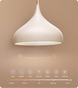– Đổi màu, cường độ ánh sáng đồng bộ với nhịp sống sinh học. 6:30 – 19:00: ánh sáng trắng ( 6500K), sau 19h: chuyển dần sang ánh sáng vàng (3000K).